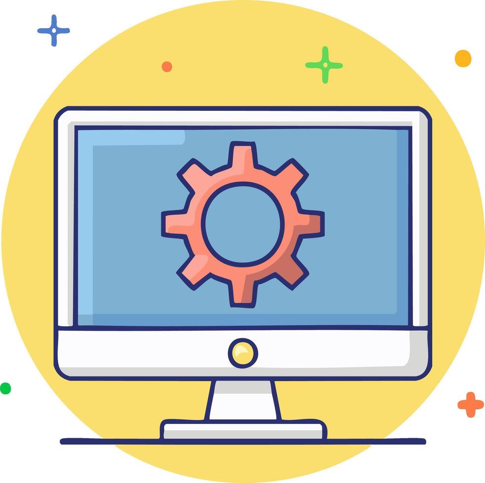 computadora con rueda dentada en pantalla software configuración y sistema ajuste preparar proceso concepto digital plano diseño Vector Pro