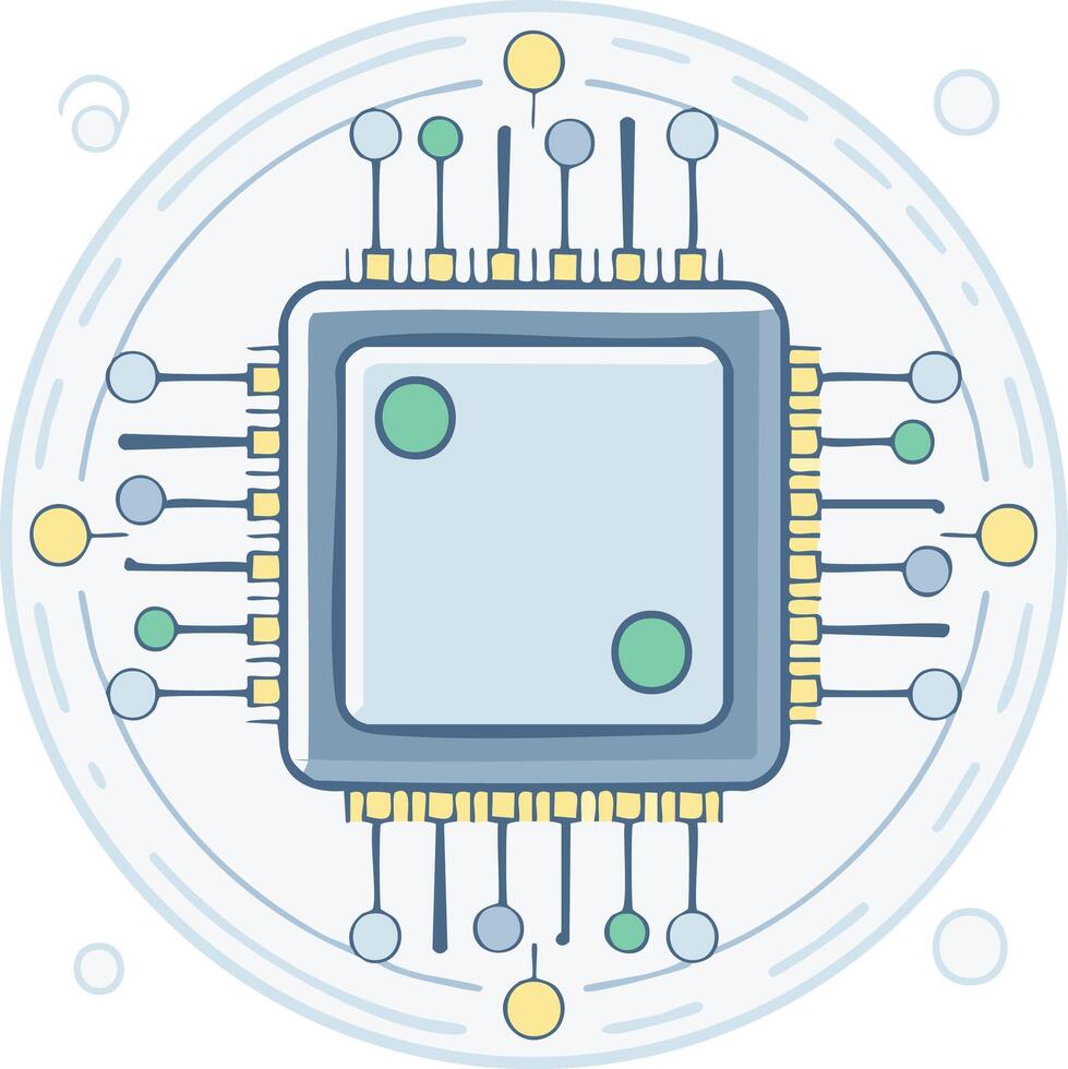 línea Arte icono de un computadora chip UPC, un microprocesador con circuito conexiones Vector Pro