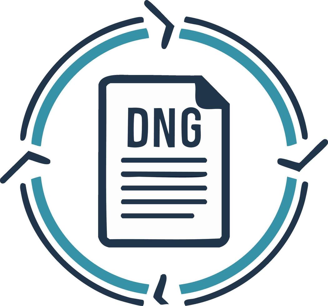 dng archivo formato icono con circular flecha para conversión o compartiendo en documento diseño Vector Pro