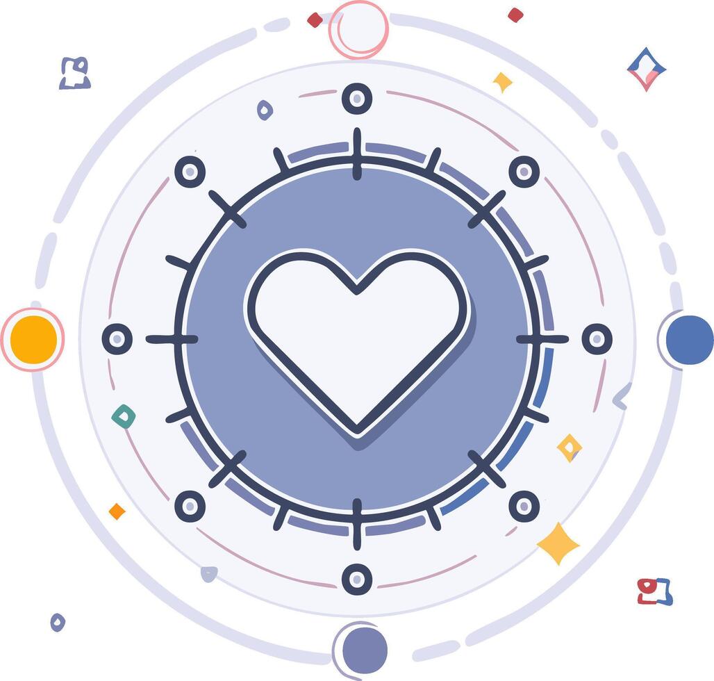 resumen corazón gráfico con cósmico elementos y circular diseño Vector Pro
