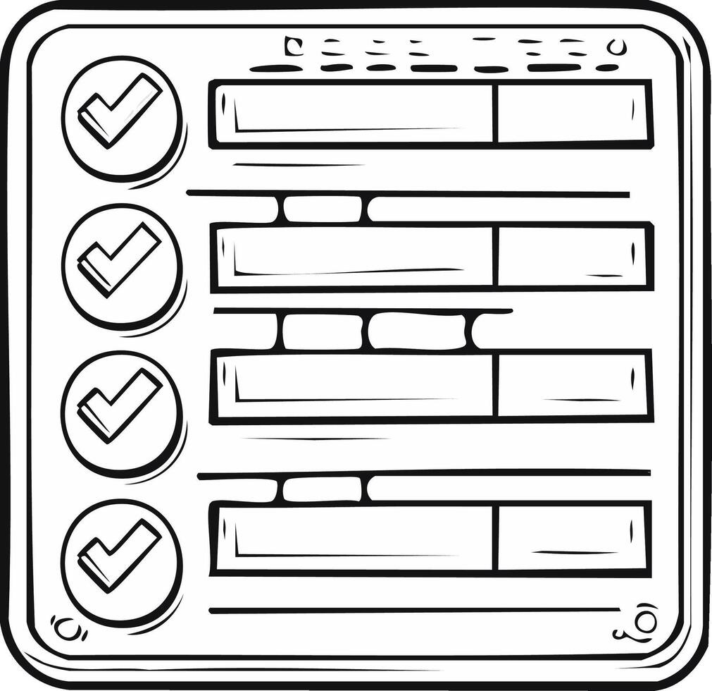 mano dibujado Lista de Verificación con múltiple comprobado artículos y Progreso barras Vector Pro