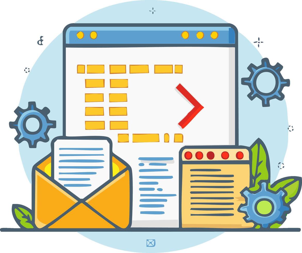 programación interfaz ilustración con código, engranajes, y documentos representando software Ingenieria concepto Vector Pro