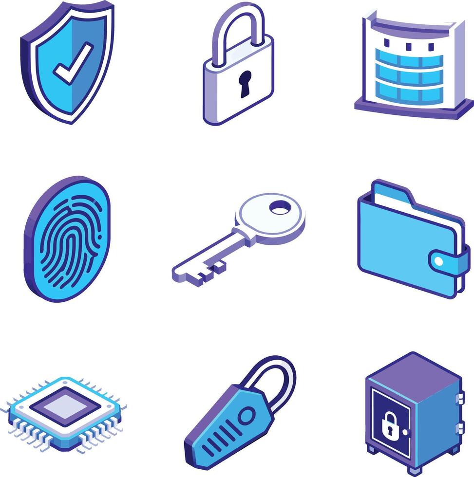 un conjunto de íconos ese incluir un llave, cerrar con llave, y otro artículos vector