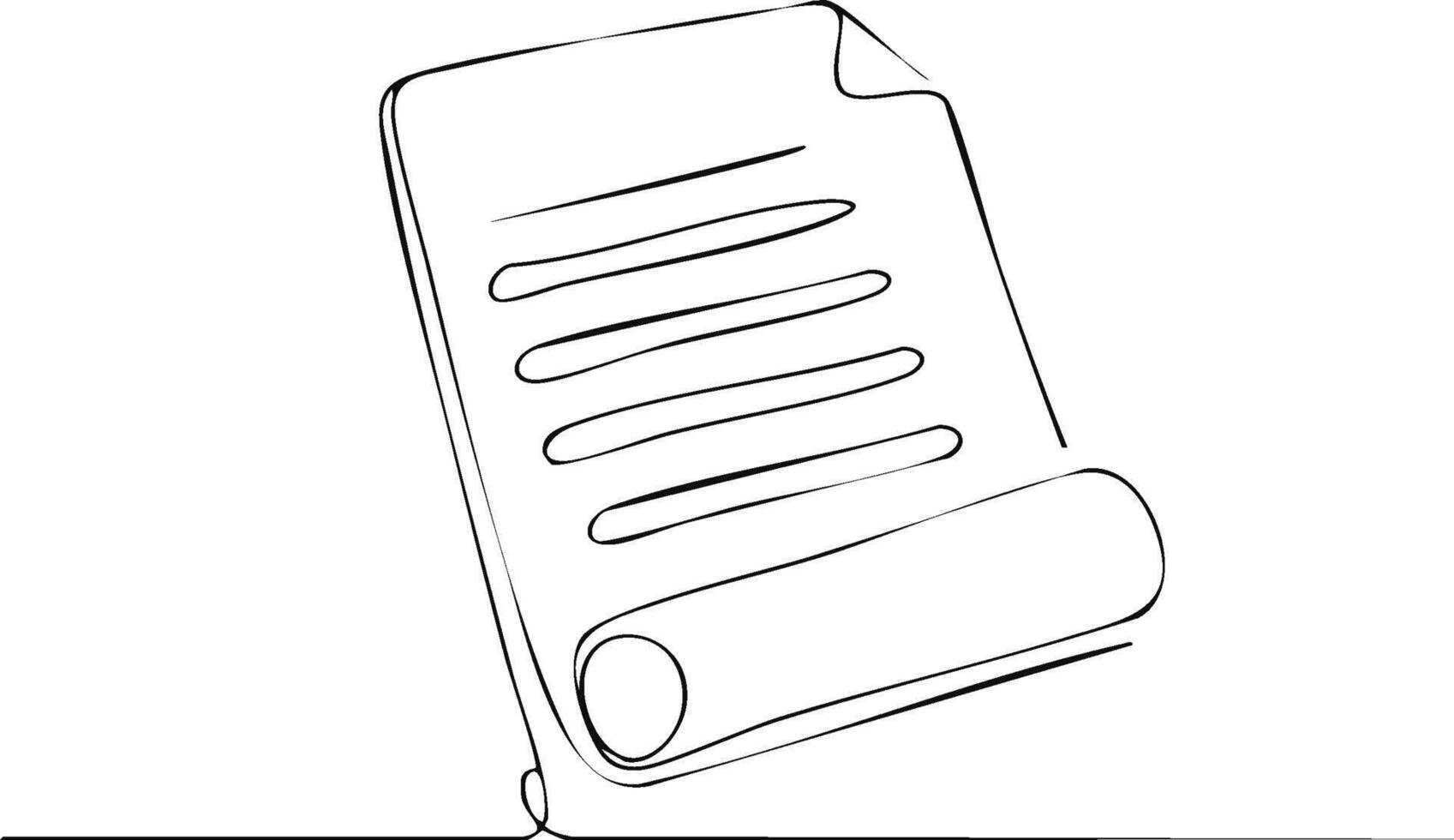 continuo línea dibujo de un arrollado documento con líneas en papel representando texto Vector Pro