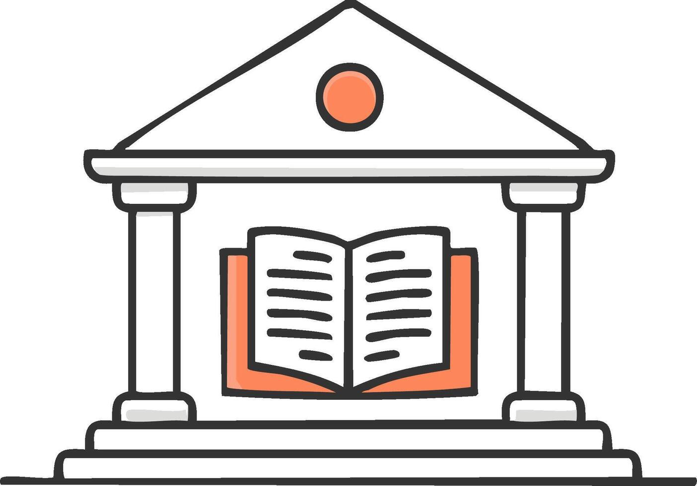 minimalista educación icono representando libro en edificio con dórico columnas y triangular techo Vector Pro