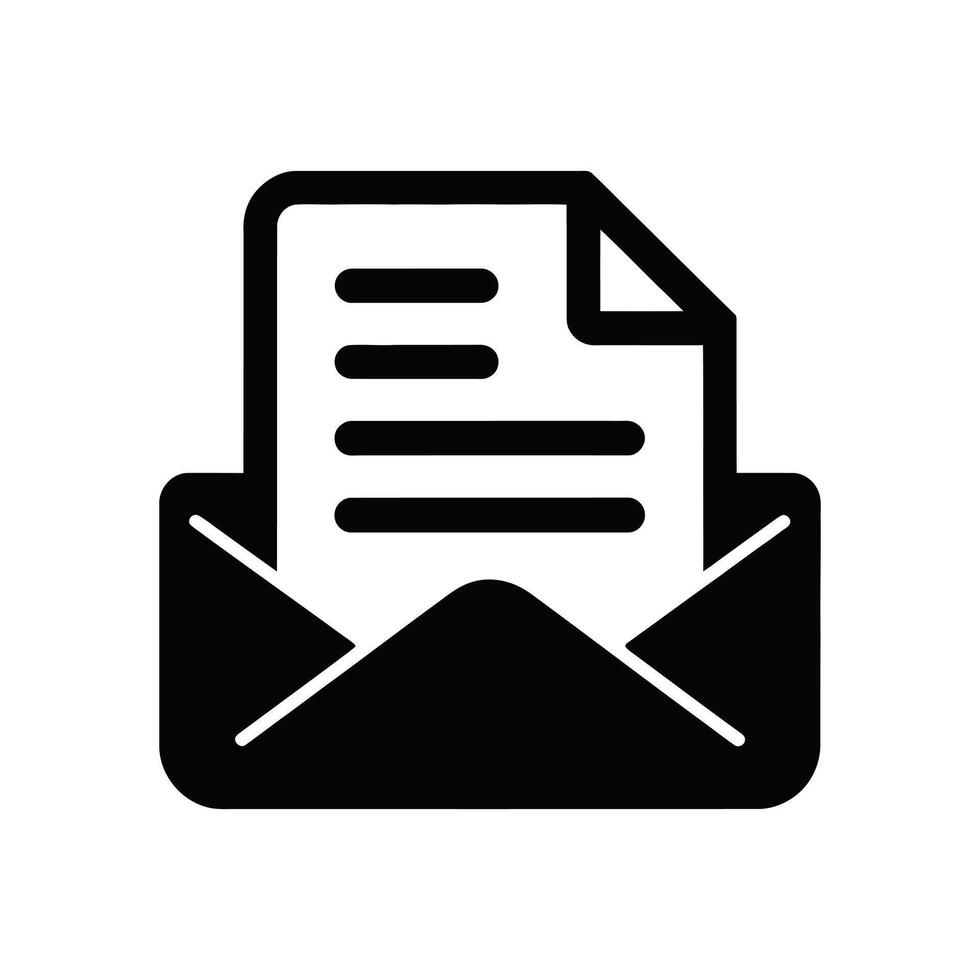 un sólido negro icono representando un abierto sobre revelador un documento con múltiple texto líneas Vector Pro