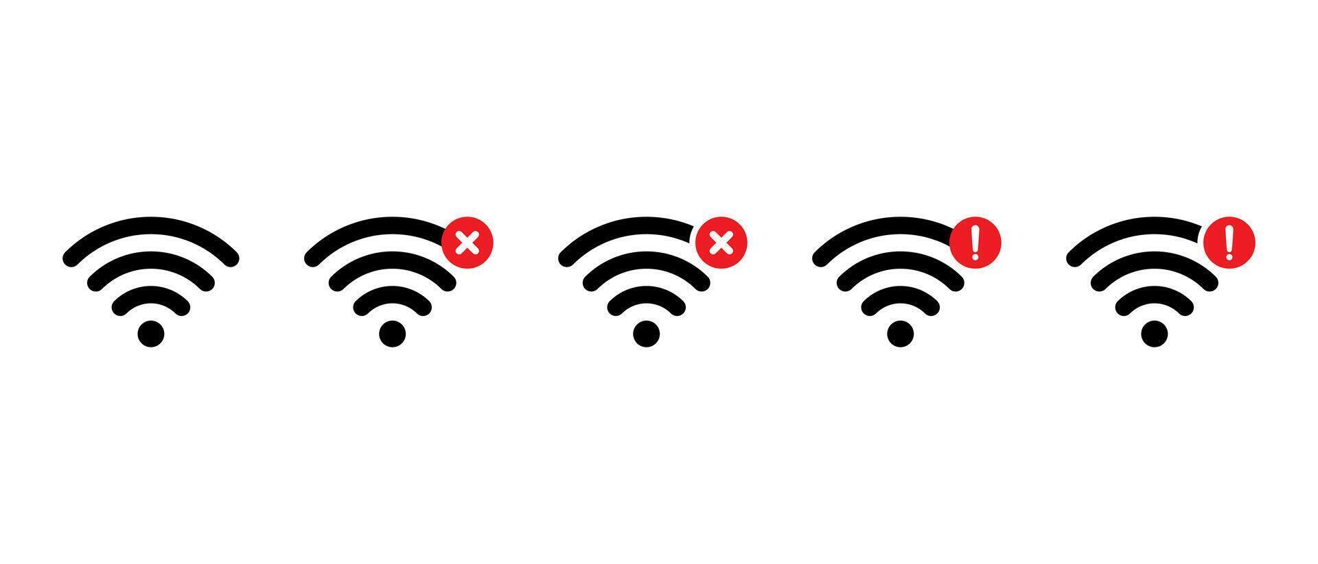 Wifi conexión icono conjunto con error y alerta icono. inalámbrico red estado, Internet problema, y señal advertencia símbolo Vector Pro