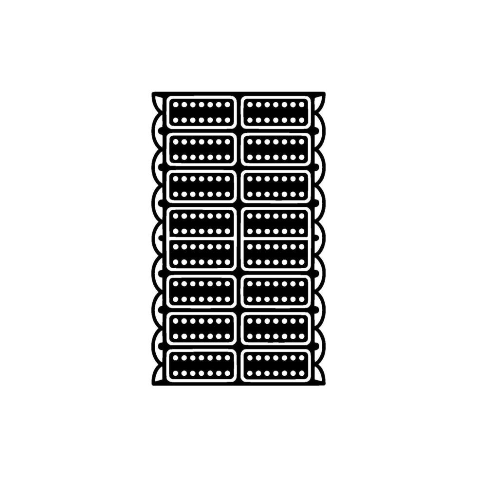 un minimalista monocromo ilustración de un apilado arreglo de dos columnas y ocho filas de rectangular segmentos lleno con puntos Vector Pro