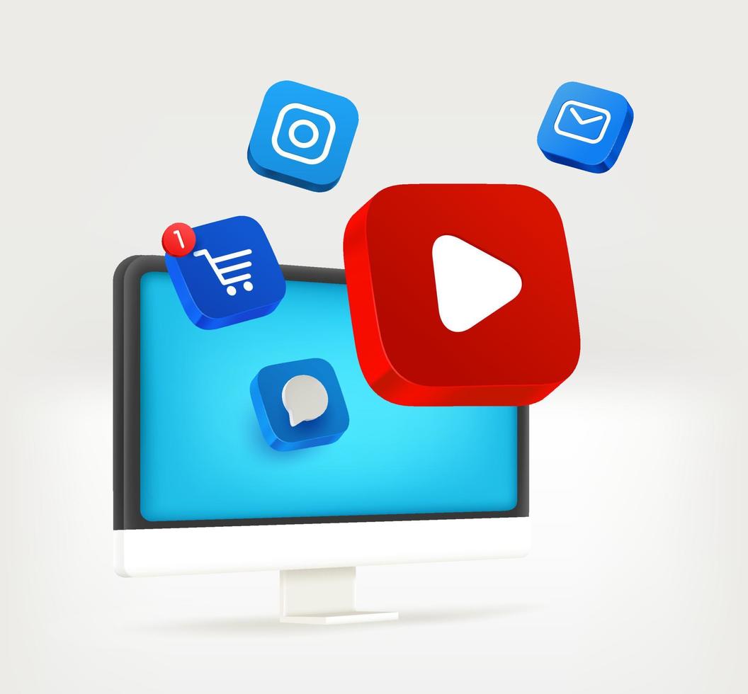 usando una computadora moderna para contenido multimedia. ilustración vectorial 3d Vector Pro
