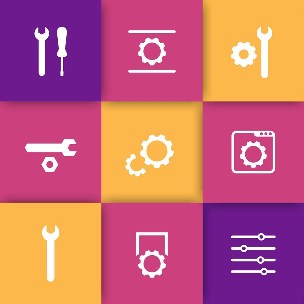 ajustes, configuración, iconos de desarrollo para sitios web y aplicaciones, ilustración vectorial Vector Pro