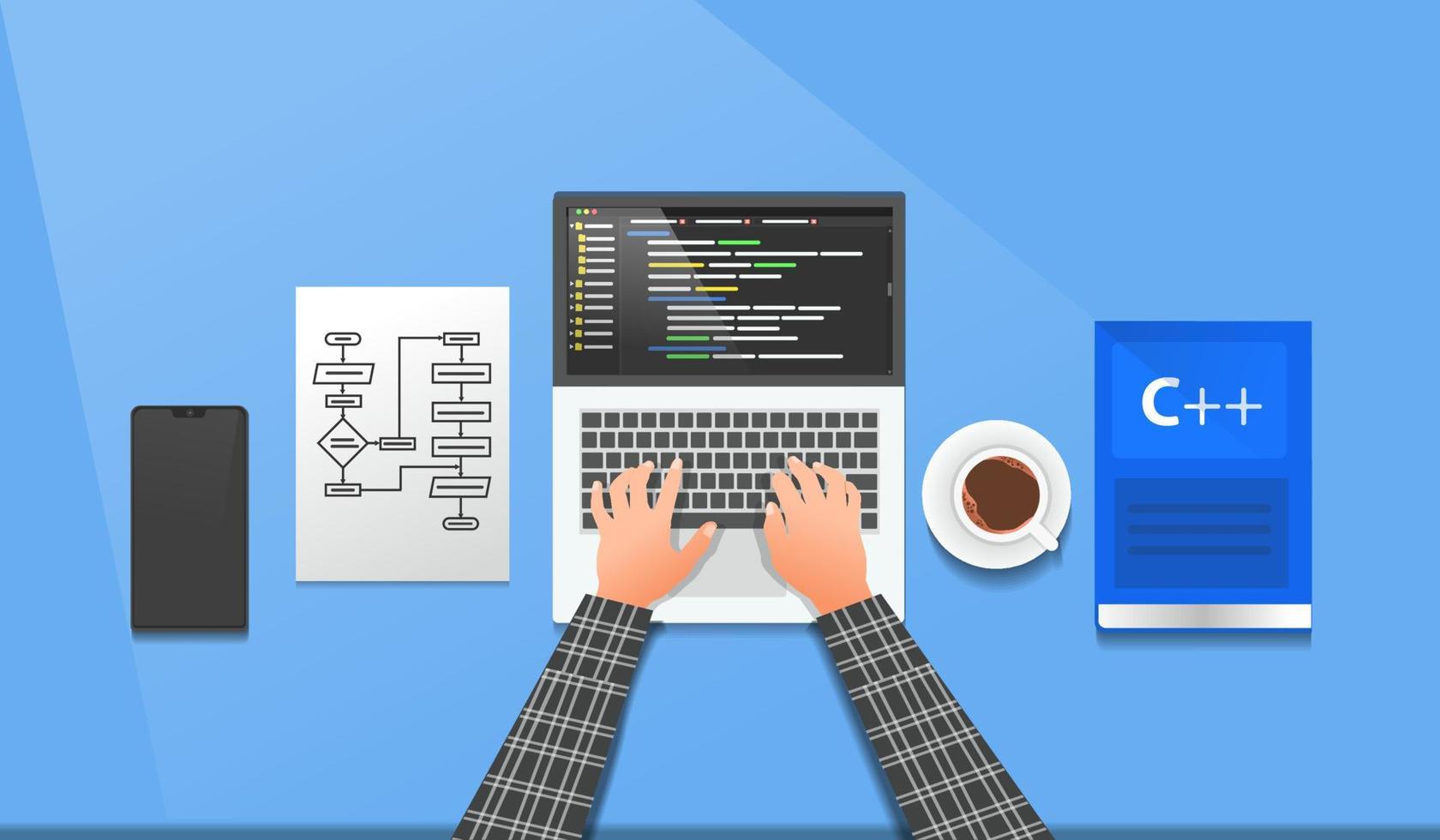 alguien está codificando para un proyecto de aplicación desde la vista superior Vector Pro