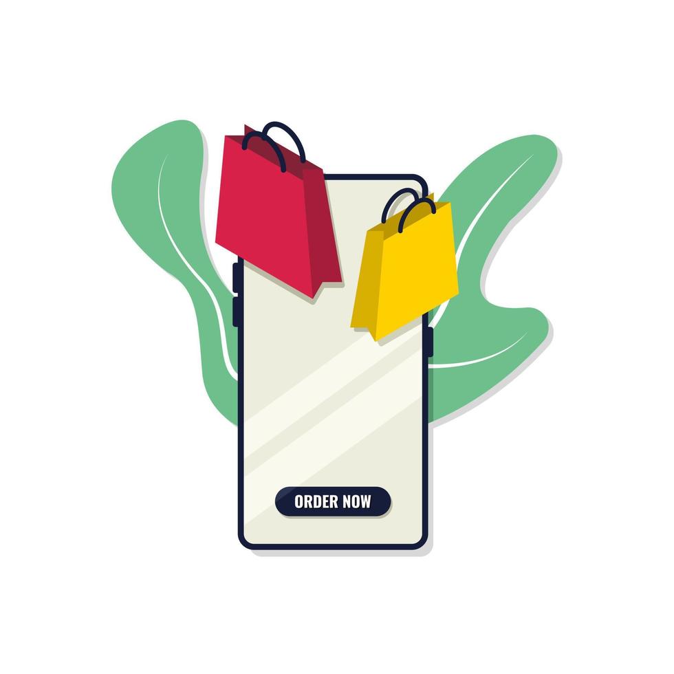 compras en línea en el concepto de aplicación y sitio web. teléfono inteligente móvil con aplicación de compras Pro Vector y Pro SVG
