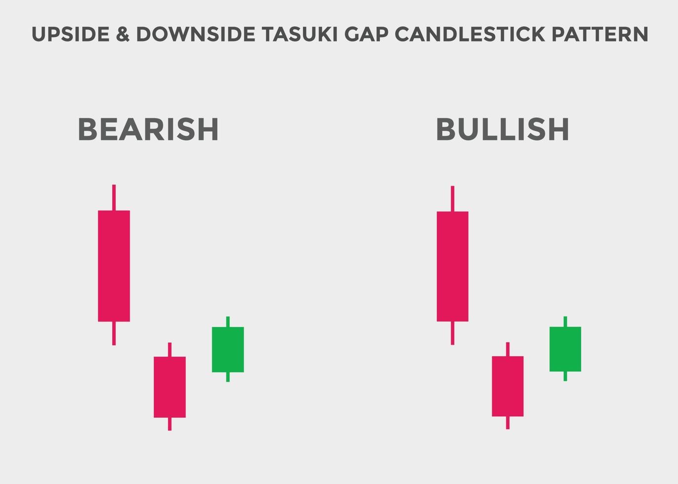 Patrones de velas Tasuki Gap al alza y a la baja. patrón de gráfico de velas para comerciantes. poderoso gráfico de velas alcistas y bajistas para divisas, acciones, criptomonedas. gráfico de velas japonesas Vector Pro