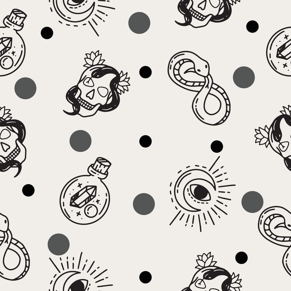 fondo de pantalla de objeto negro aleatorio de patrones sin fisuras con diseño en blanco. Vector Pro
