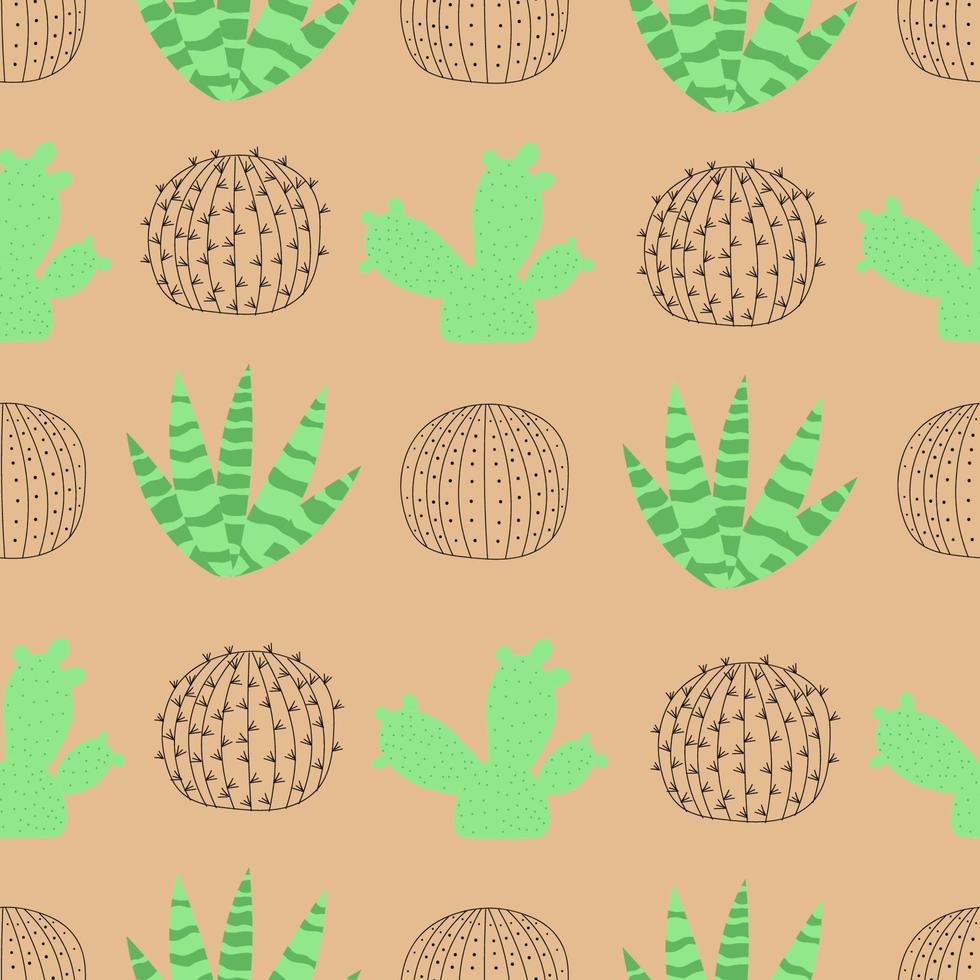 patrón sin costuras con cactus en el fondo del desierto en estilo de dibujos animados.ilustración vectorial Vector Pro