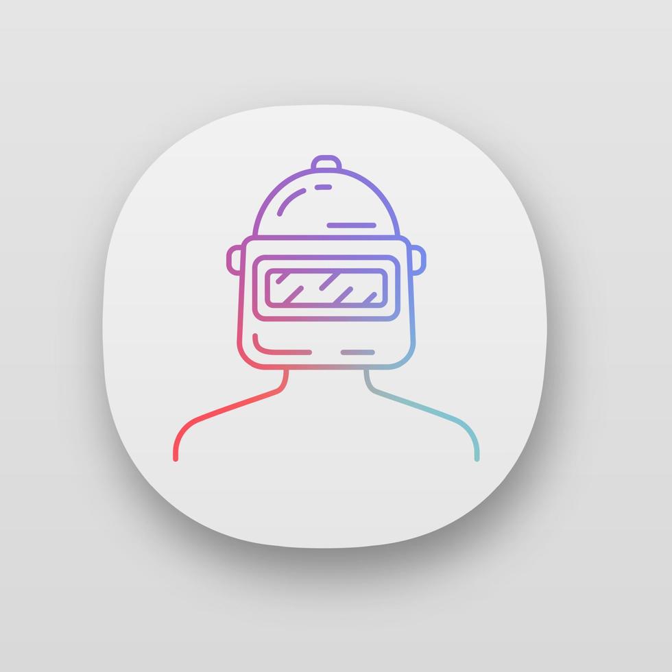 icono de la aplicación de soldado del juego. jugador, soldado, guerrero equipo de protección. inventario de juegos virtuales. casco de soldador. casco de soldadura. interfaz de usuario ui ux. aplicación web o móvil. ilustración vectorial aislada Vector Pro