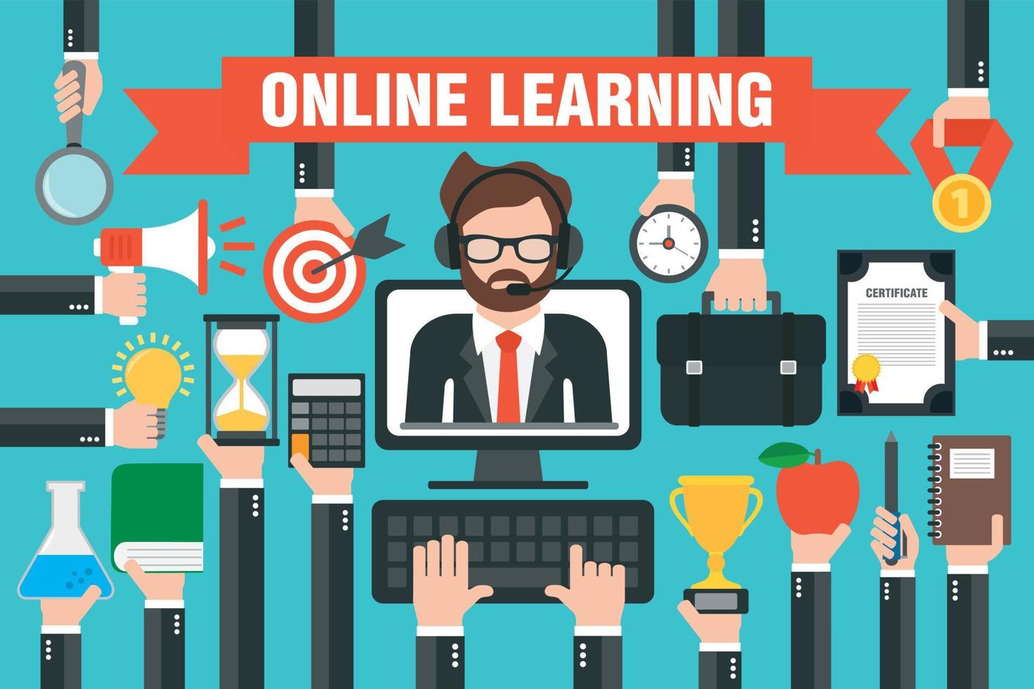 conceptos de diseño plano aprendizaje en línea con profesor en línea en computadora Vector Pro