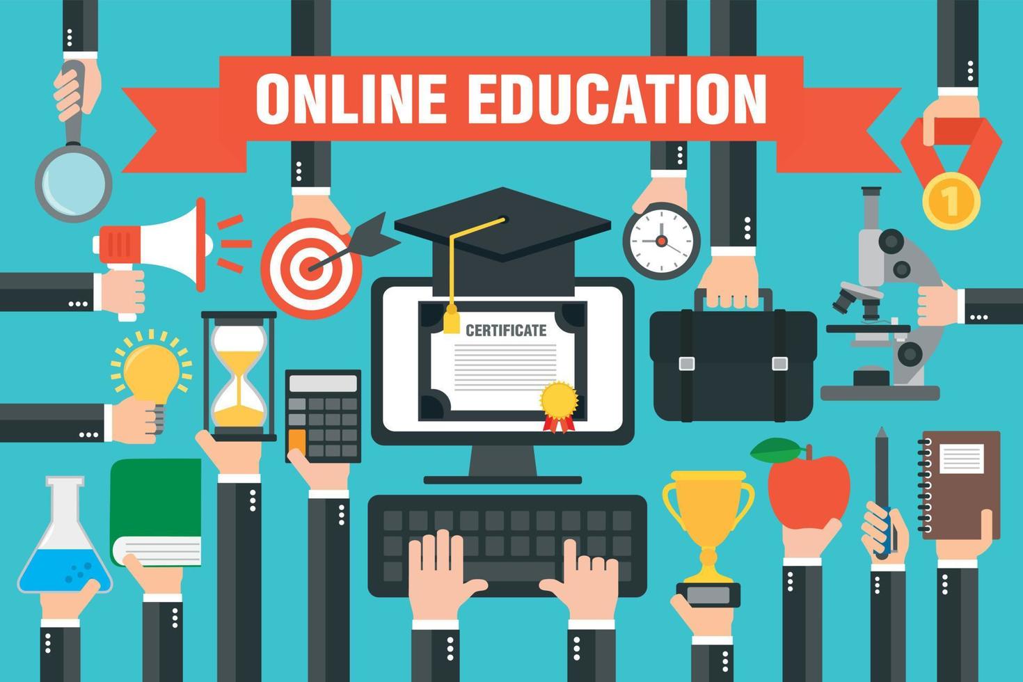 conceptos de diseño plano educación en línea, e-learning con computadora Vector Pro