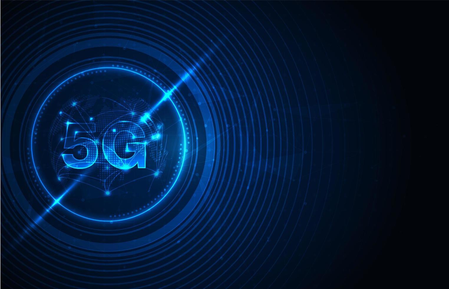 Red 5g conexión inalámbrica a internet wi-fi e internet de las cosas con moderno. Ilustración de vector de tecnología de tasa de datos de conexión de innovación de alta velocidad. Vector Pro