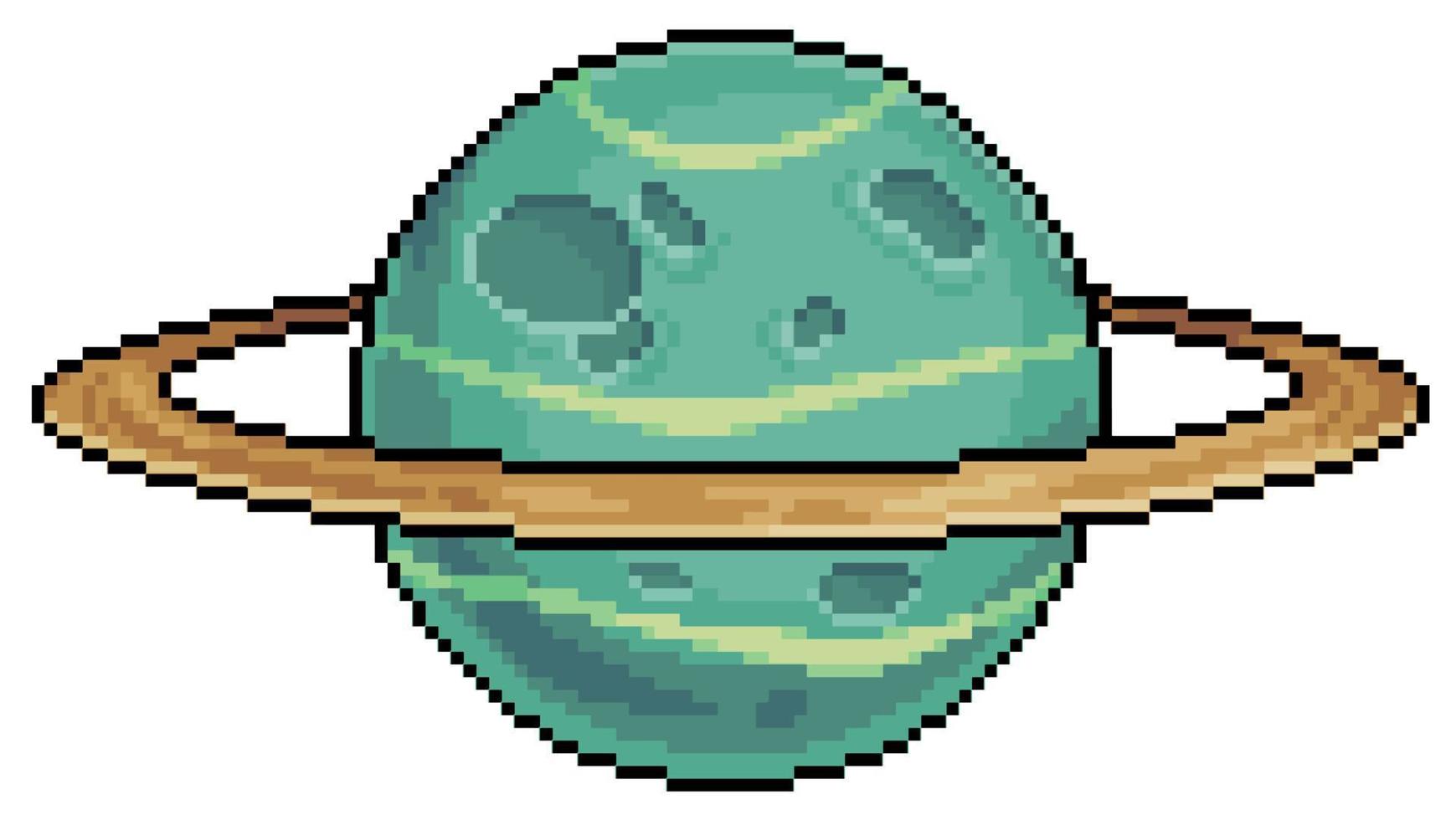 planeta de arte de píxeles con icono de vector de anillos para juego de 8 bits sobre fondo blanco Vector Pro
