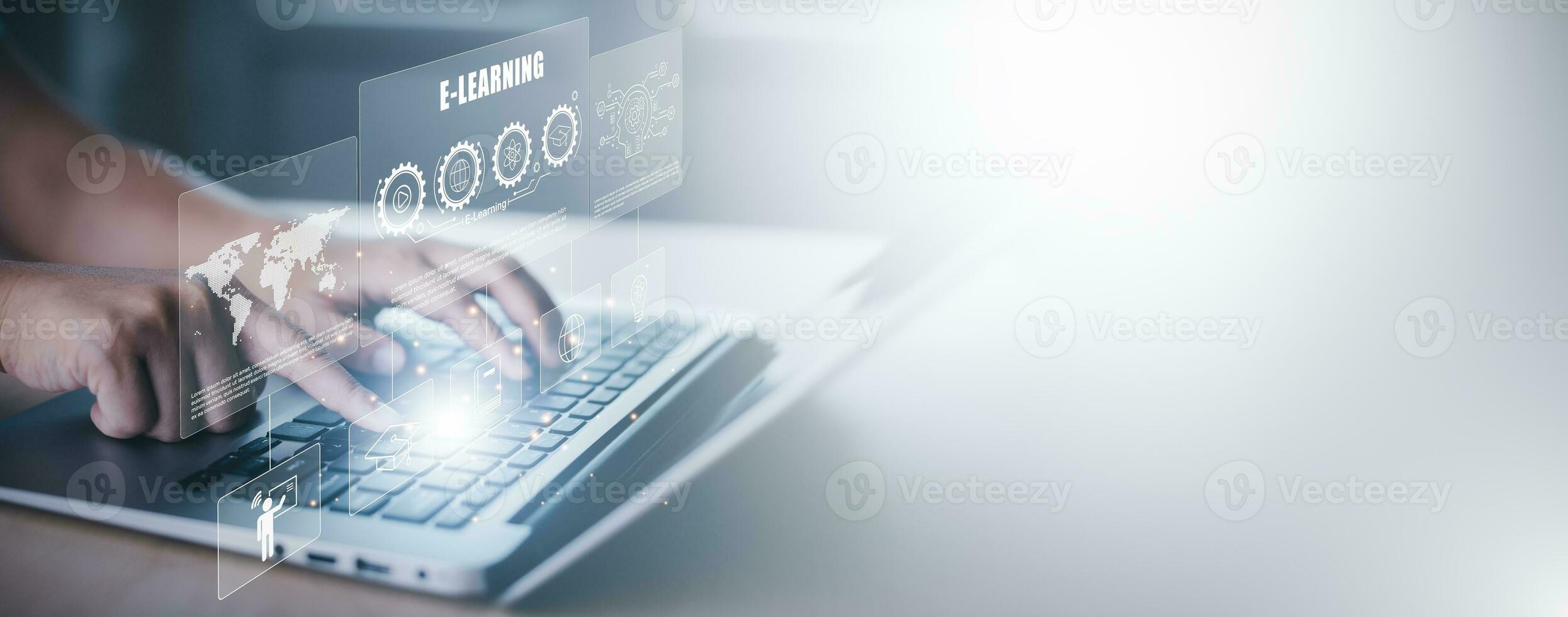 e-learning educación con en línea cursos e-learning concepto. aprendizaje taller aprender a pensar Internet formación conocimiento tecnología, en línea aprendizaje con seminarios web, vídeo tutoriales, Internet lecciones Foto Pro