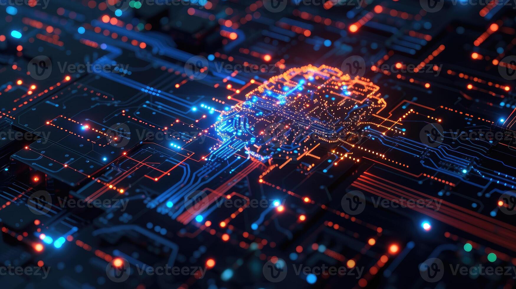 ai generado un neural circuito se entrelaza con un electrónico ciber cerebro en un cuántico informática sistema. futurista, ai generado. Foto Pro