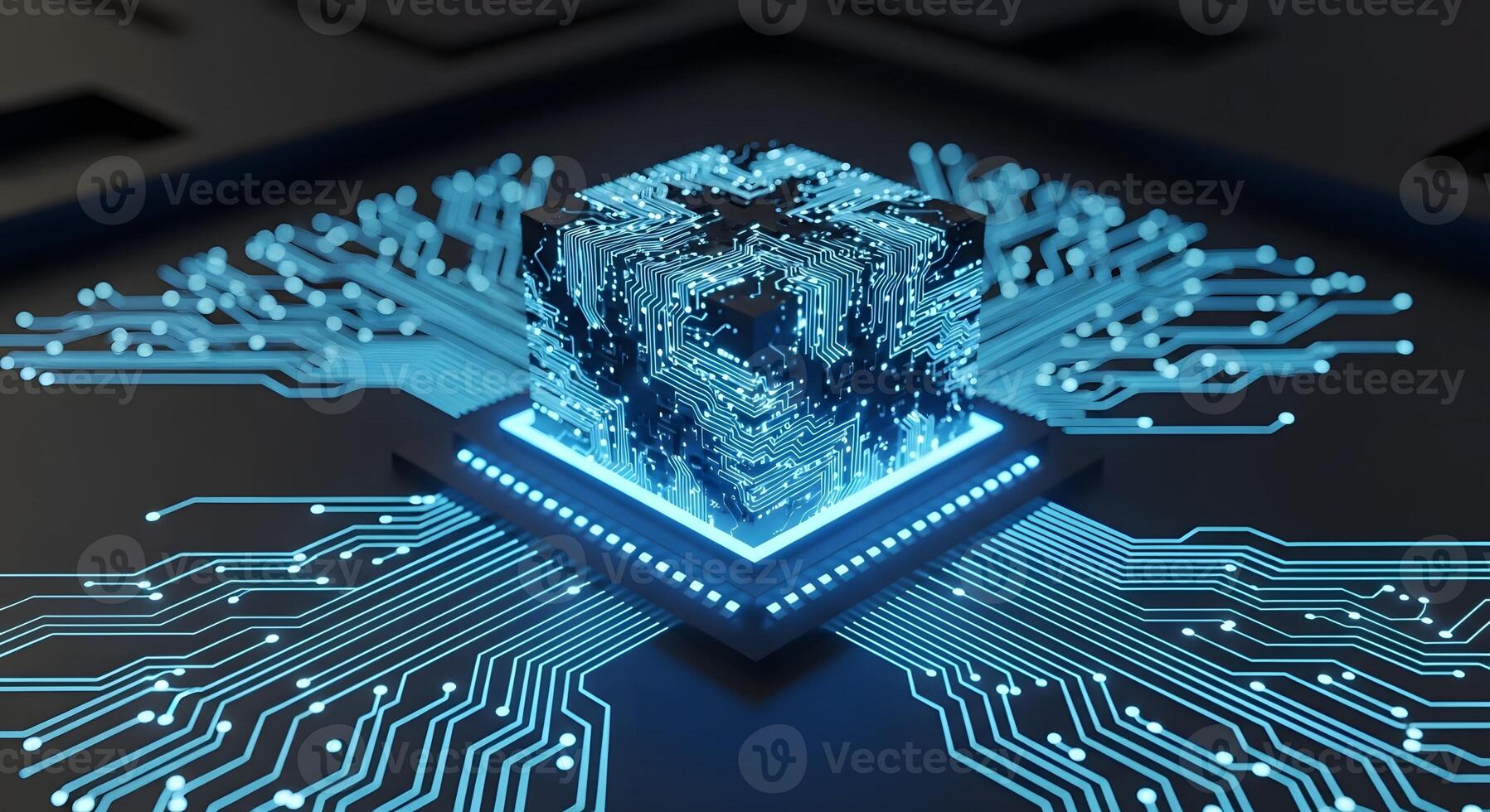 futurista tecnología cubo digital datos circuitería ai y informática poder Foto Pro