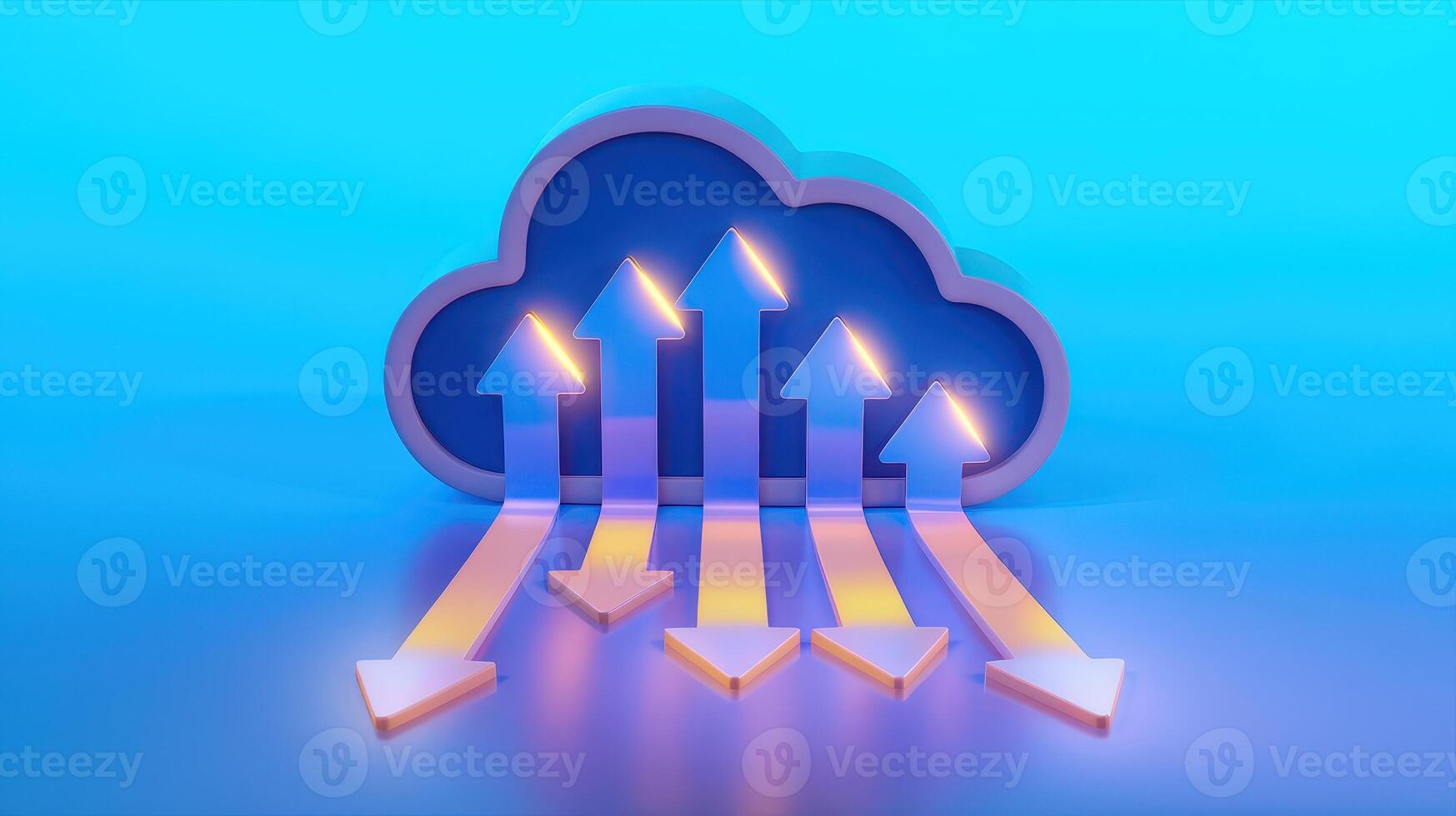 nube informática con creciente y que cae flechas, ilustrando datos fluir y conectividad Foto Pro
