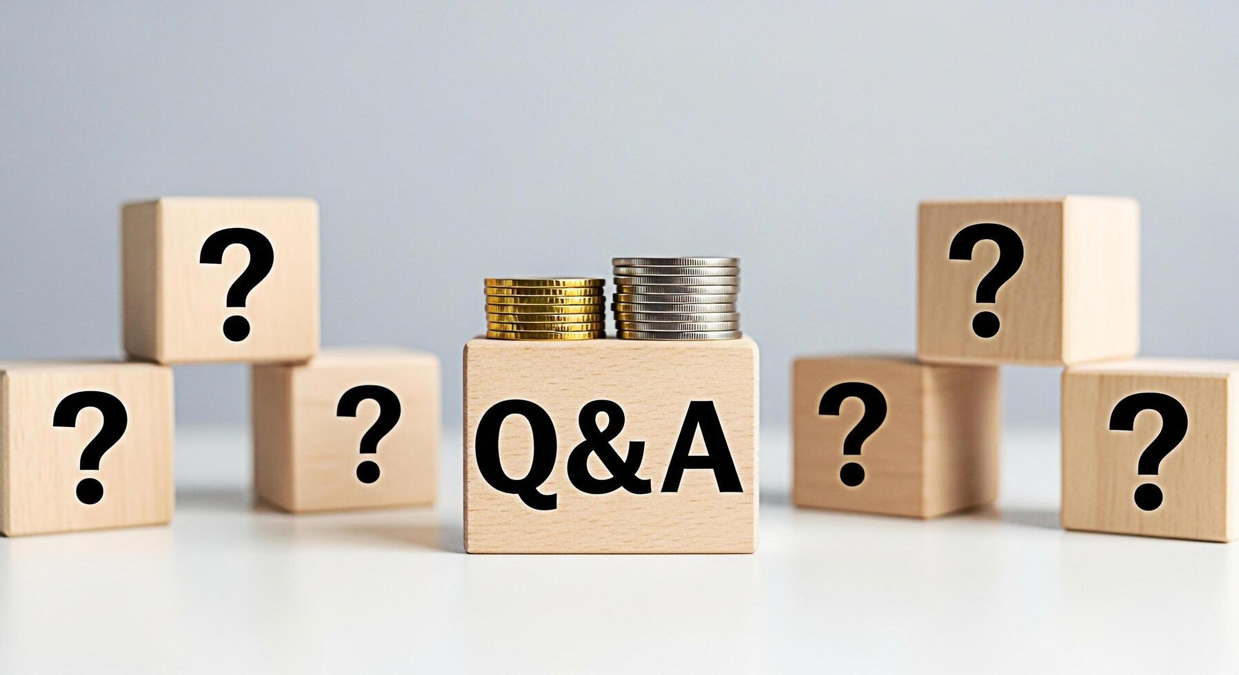 de madera bloques mostrando qa y pregunta marcas con pilas de monedas en un blanco superficie representando financiero preguntas y respuestas inversión decisiones y conocimiento adquisición en un brillante estudio se foto