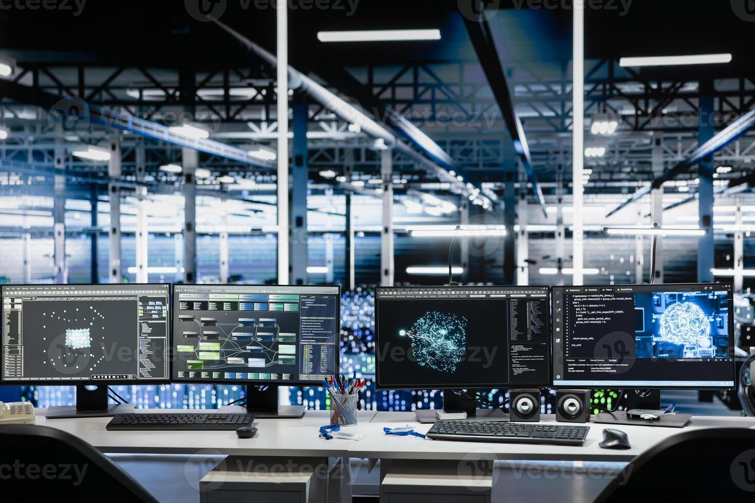 ai desarrollo piezas en datos centrar con computadoras centrales infraestructura hospedaje nube servicios. ordenadores usado para despliegue neural red algoritmos en servidor granja con hardware conducción automatización Tareas Foto Pro