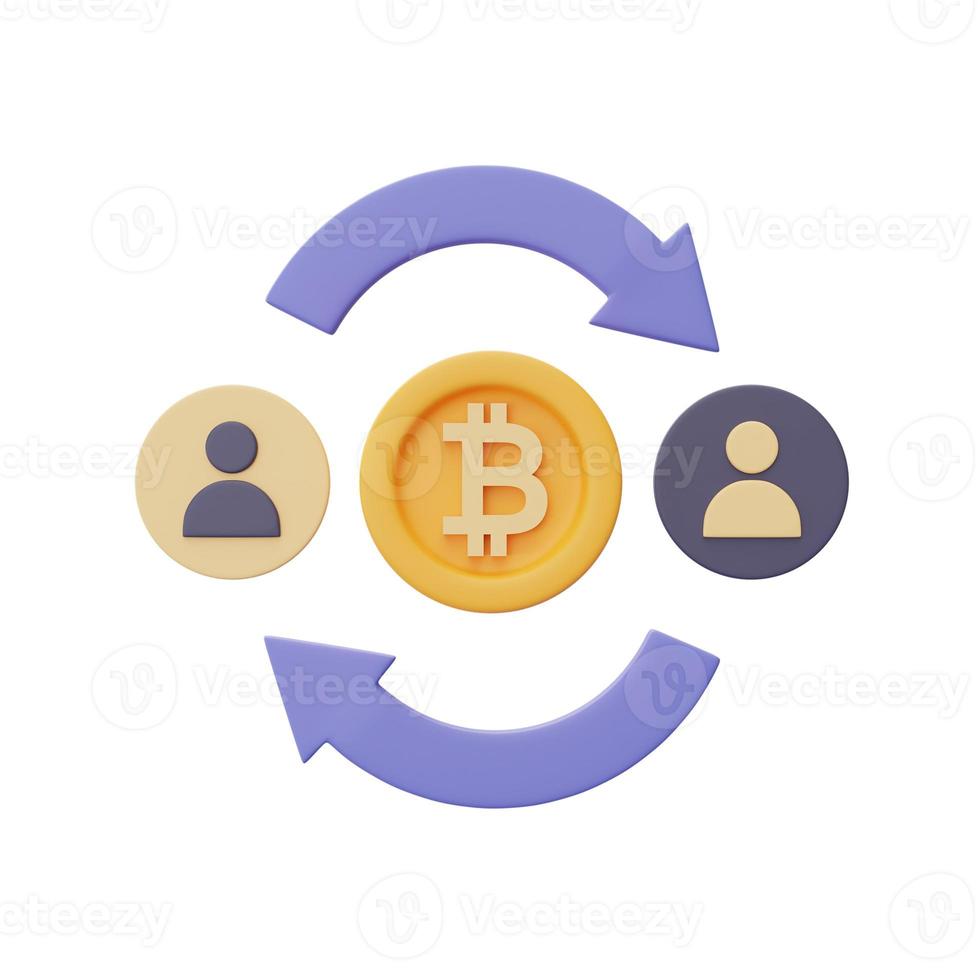 concepto de intercambio de criptomonedas en línea con moneda bitcoin, servicios de tecnología de cadena de bloques, estilo mínimo. Representación 3d. Foto Pro