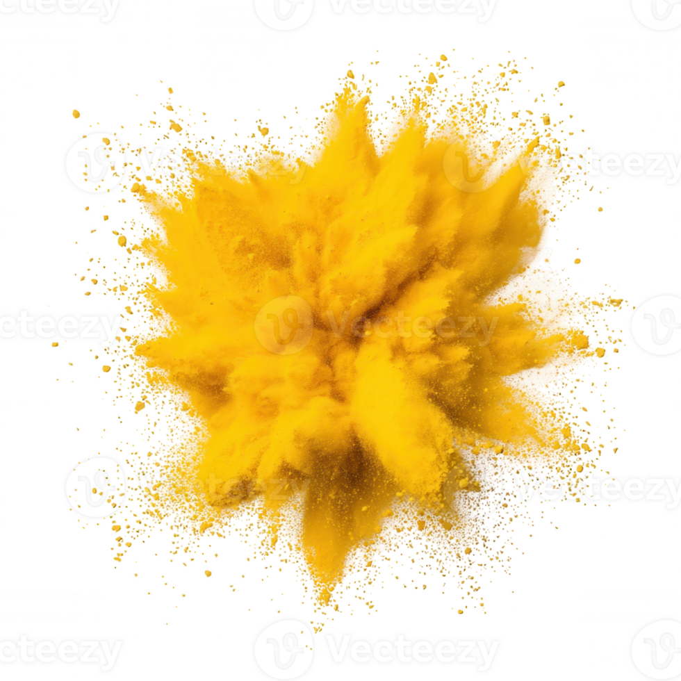 amarillo polvo explotando creando transparente un nube con partícula fondo, Perfecto para gráfico recursos PNG Pro
