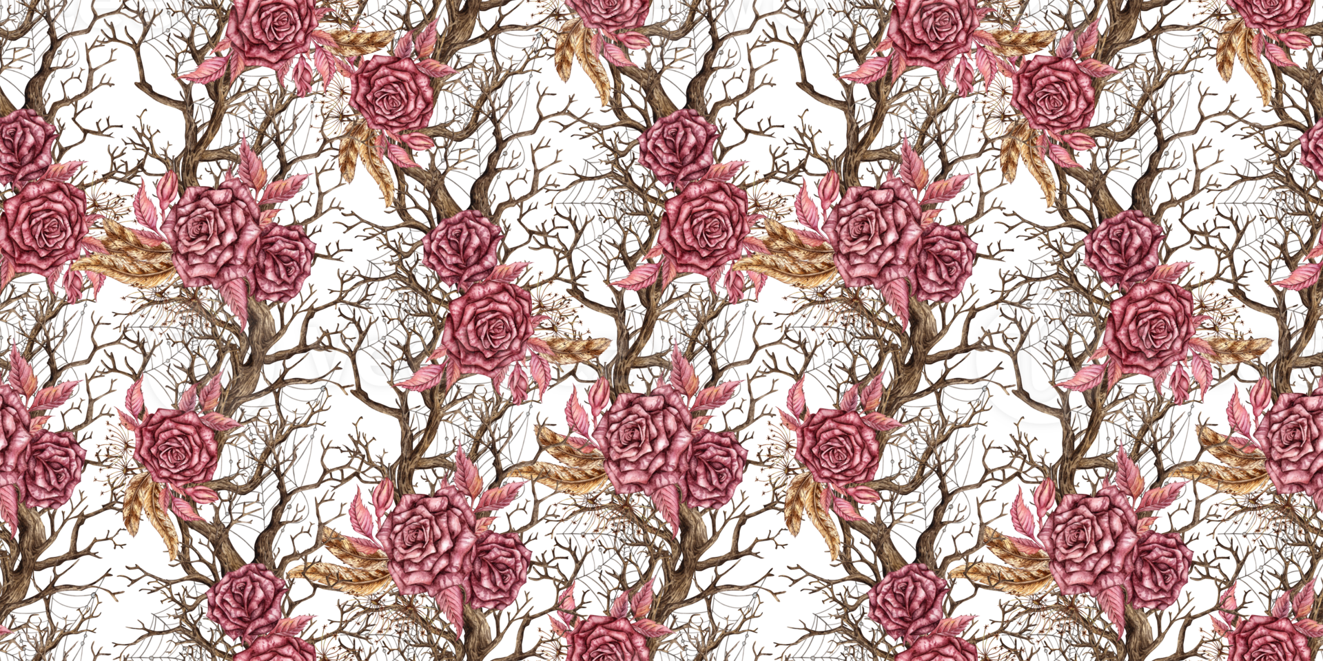 sin costura modelo gótico rosas ramas plumas telaraña PNG Pro