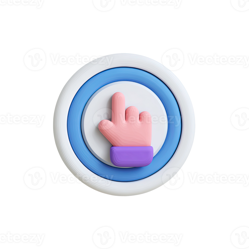 3d icono de un mano cursor señalando gesto en un circular azul y blanco botón aislado en transparente antecedentes PNG Pro