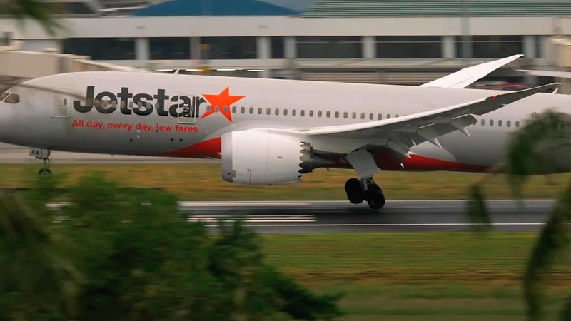 phuket, tailandia 3 de diciembre de 2016 jetstar boeing 787 dreamliner vh vka acercándose antes de aterrizar en el aeropuerto de phuket.