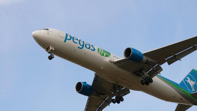 moscú, federación rusa 12 de septiembre de 2020 - pegas fly boeing 767 vp boy acercándose antes de aterrizar en la pista 24l en el aeropuerto internacional de sheremetyevo