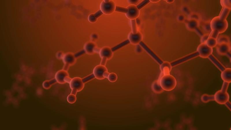 Estructura de la molécula bajo microscopio, flotando en un fluido con fondo naranja Vídeo Gratis