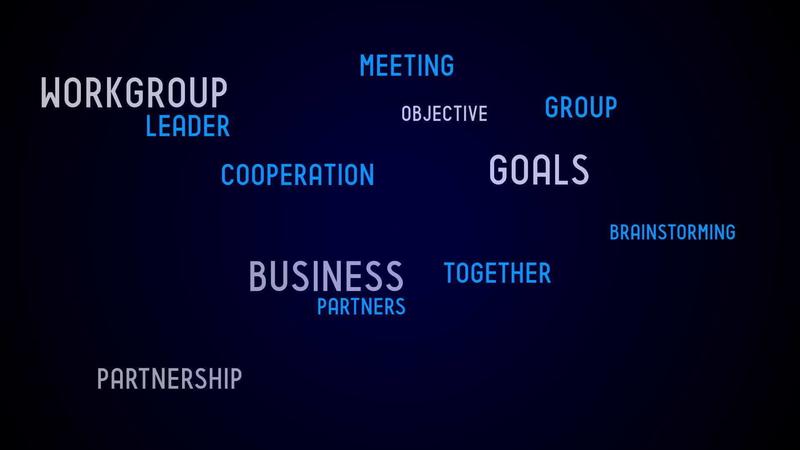trabajo en equipo - blanco y azul palabras en oscuro azul fondo, tipográfico concepto Vídeo Pro