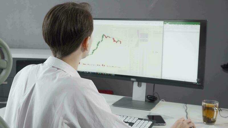 hembra valores comerciante sonriente a el cámara mientras trabajando en su computadora Vídeo Pro