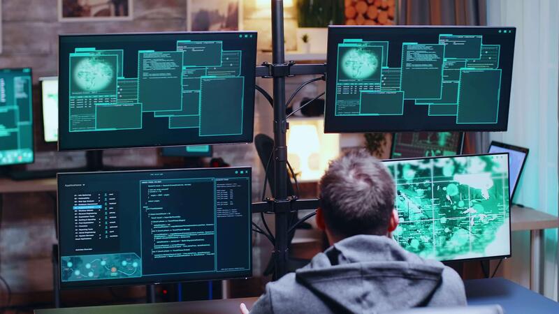 emocionado hacker después rotura gobierno servidor utilizando supercomputadora. Vídeo Pro
