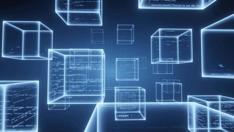 blockchain concepto, cubo con digital datos código adentro. Vídeo Pro