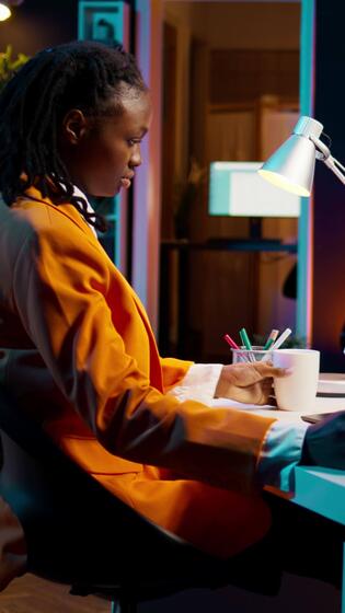 vertical vídeo africano americano eso especialista trabajando con codificación idioma y infografía, mejorando servidor seguridad en terminal ventana. joven programación estudiante aprendizaje a utilizar código y hardware. cámara b. Vídeo Pro