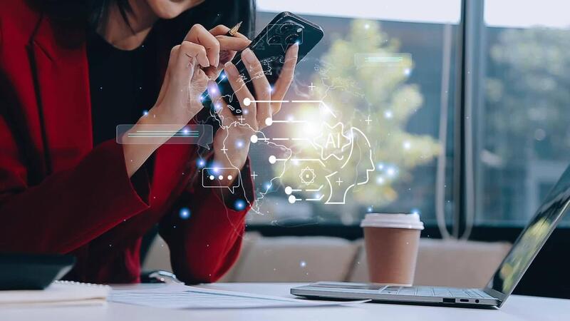ai tecnología, empresario espectáculo virtual gráfico global Internet conectar chatbot charla con ai, artificial inteligencia. utilizando mando rápido para genera algo, futurista tecnología transformación. Vídeo Gratis