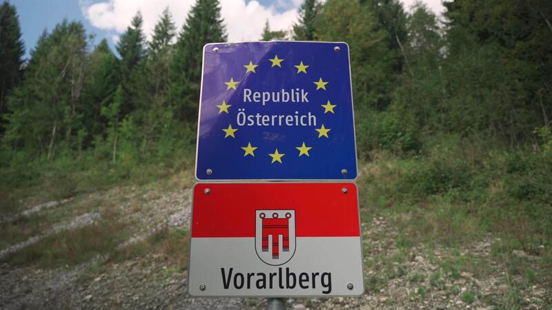 frontera firmar a austriaco-alemán estado frontera Entrada a Vorarlberg. agridulce der republik osterreich. nacional frontera la carretera firmar entrando Austria. morir granizo zwischen Osterreich und deutschland Vídeo Pro