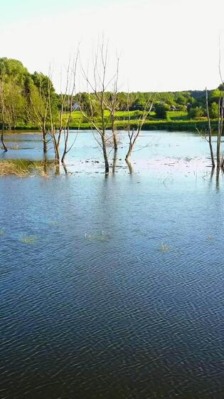 perenne arboles murió en el agua. aéreo Disparo de el perenne arboles murió en el agua a el reservorio vertical Vídeo Pro