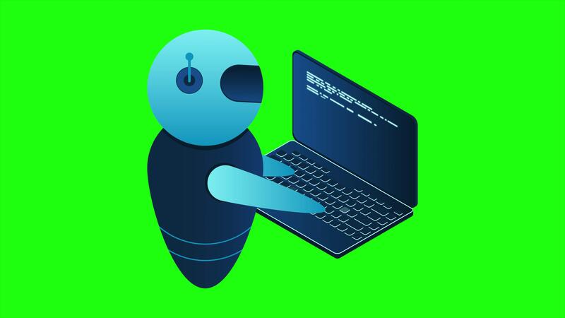 futurista robot Interacción con computadora animación. isométrica ai robot. digital comunicación chatbots 4k animado en isométrica estilo Vídeo Pro