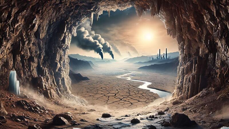 ver desde un Desierto cueva dentro un muriendo mundo Vídeo Pro