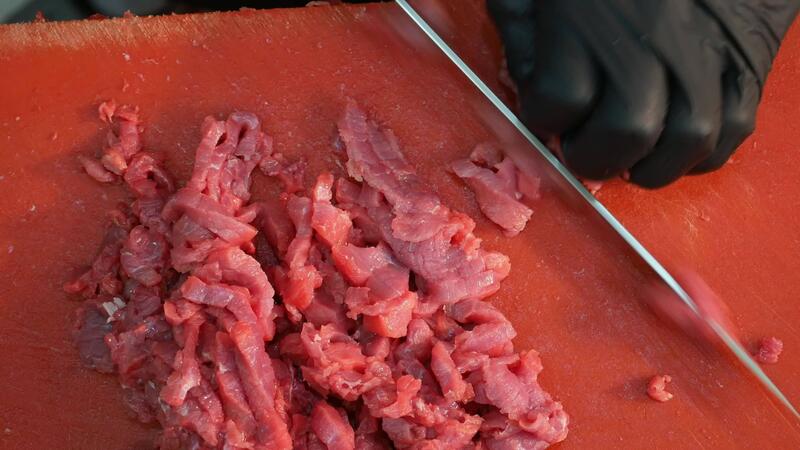 recién Cortado crudo carne metido pulcramente en un corte tablero Listo para utilizar Vídeo Gratis