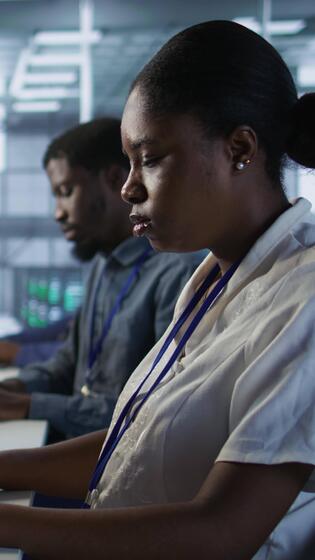 vertical cerca arriba de programador en datos centrar implementar ai profético mantenimiento sistemas atención en eso profesional en servidor cubo utilizando artificial inteligencia a identificar hardware fracasos, cámara un Vídeo Pro