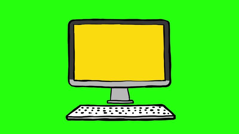 un computadora monitor con un teclado en un verde antecedentes Vídeo Gratis